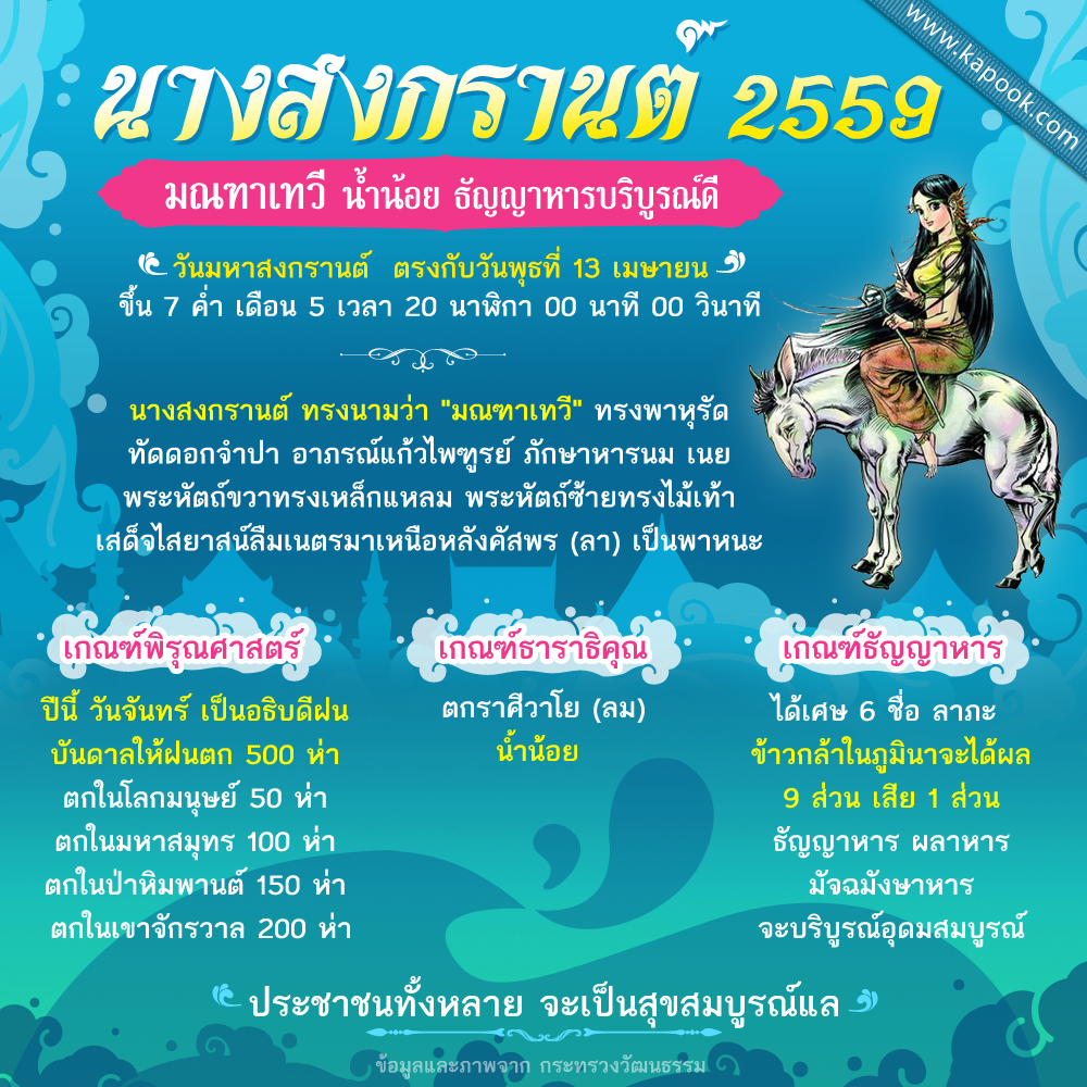 นางสงกรานต์ ปี 2559 "มณฑาเทวี" ทำนายน้ำน้อย-ธัญญาหารบริบูรณ์ >> //hilight.kapook.com/view/133984