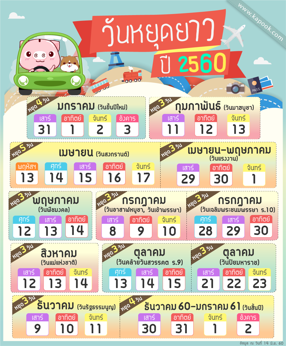 วันหยุด 2560 ปฏิทินวันสำคัญ วันหยุดราชการ ปี 2560 >> //hilight.kapook.com/view/138302