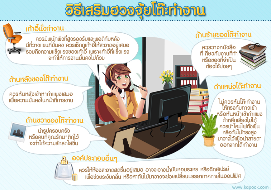 ข่าวที่เกี่ยวข้อง วิธีเสริมฮวงจุ้ยโต๊ะทำงาน เสริมพลัง สร้างความสำเร็จ ^^ >> https://home.kapook.com/view44690.html