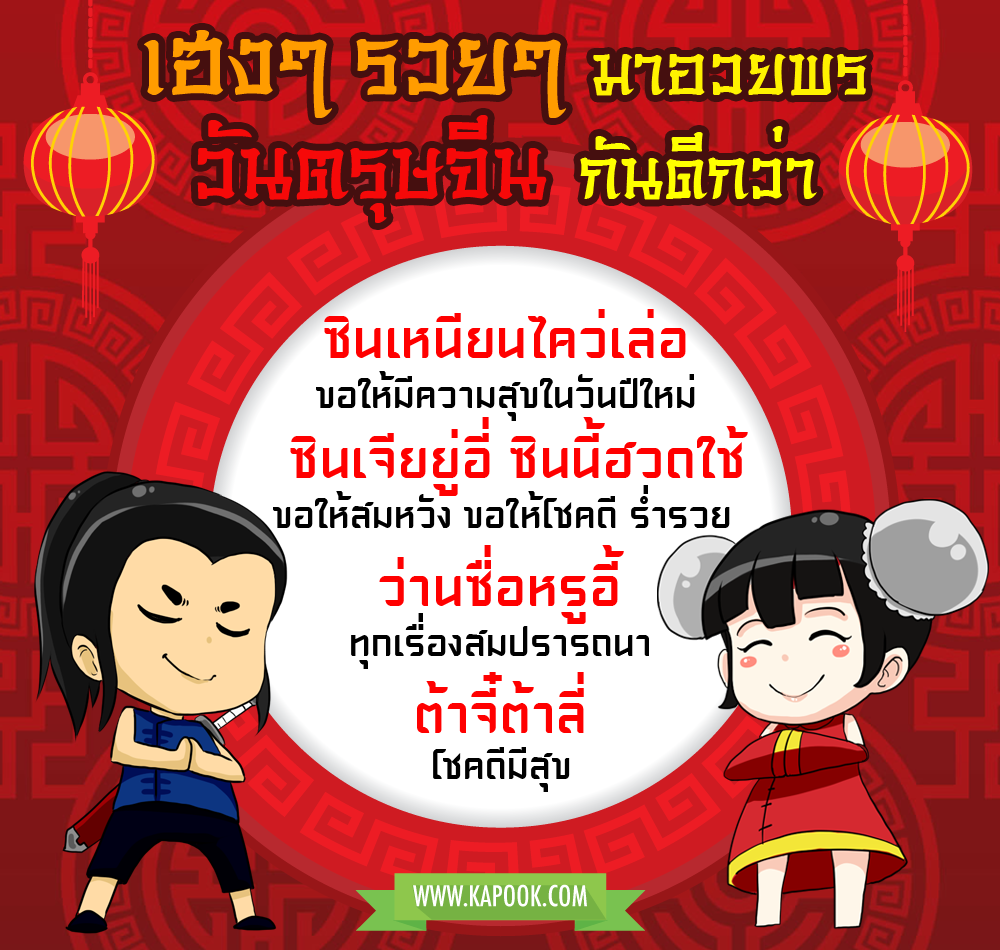 "ซินเจียยู่อี่ ซินนี้ฮวดไช้" ปีใหม่นี้ขอให้สมหวัง ร่ำรวยกันทุกคนนะจ๊ะ มาอวยพรตรุษจีนกัน >> http://bit.ly/11u10js