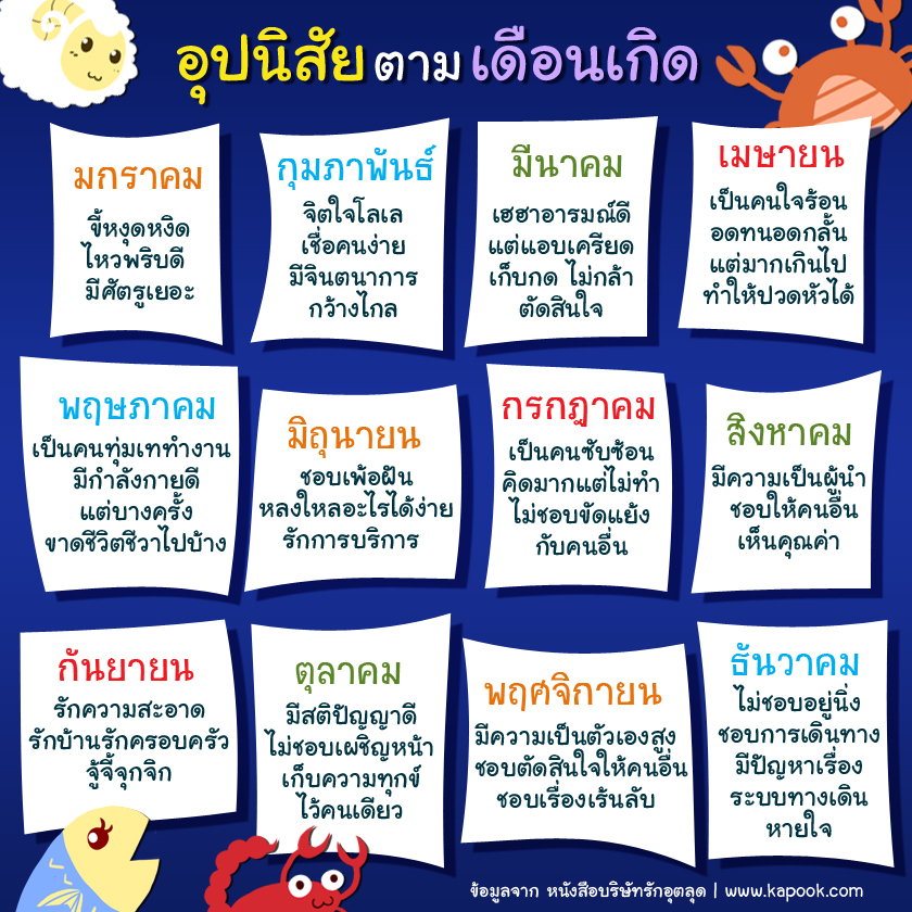 อุปนิสัยตามเดือนเกิด >> http://bit.ly/15A4u3d