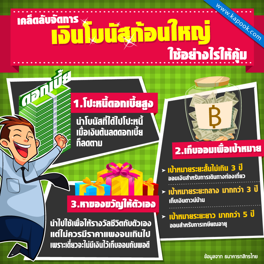 เคล็ดลับจัดการเงินโบนัสก้อนใหญ่ ใช้อย่างไรให้คุ้ม >> //money.kapook.com/view79084.html